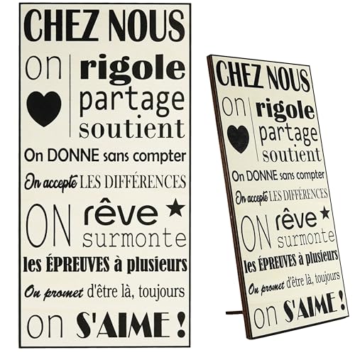 Zinello Design Tableau décoration murale en bois « Chez Nous » – Cadre mural décoratif 30x15 cm à poser ou à accrocher – panneau mural bois, idée cadeau maison, entrée salon, crémaillère