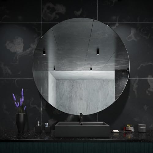 GOLD&CHROME UNIQUE DESIGN Miroir Mural en Cristal, Rond, sans Cadre, 90 cm x 90 cm x 1 cm, 6,5 kg, Bord en C Chanfreiné, Moderne, Minimaliste, Salle de Bain, Le Salon, Éléments de Montage Inclus