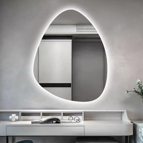 WJFTODAY Miroir de courtoisie Mural en Forme de Larme 76 x 101 cm avec éclairage LED à inon de Salle de Bain irrégulière sans Cadre, Grand Format 76 x 122 cm, Design Moderne pour Une Maison élégante.