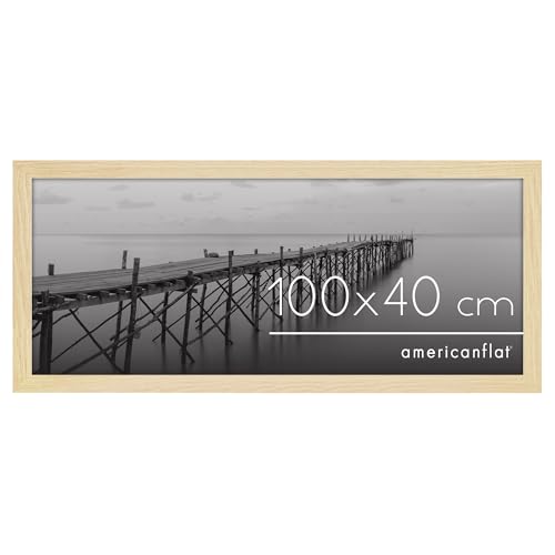 Americanflat Cadre 100x40 cm Chêne Naturel - Cadre Photo Grand Format 40x100 cm en Bois MDF avec Plexi Poli et Matériel de Suspension - Suspension Horizontale ou Verticale