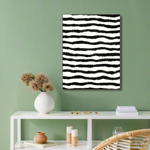 Impression Sur Toile, Déco Murale Pour Salon Et La Chambre, Rayures Ondulées 40x50cm Tableau Mural Noir et blanc, Peintures Sur Toile Sans Cadre, Moderne Simple Tableau Peinture
