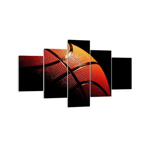 Moderne Impression sur Toile Basket-ball jeu sport Image Tableau Decoration Murale 125x70cm Deco Cadre Décoration Salon Chambre Triptyque 5 parties Tableaux Decoratifs Muraux Art Wall EA125x70-2225