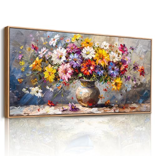 JHHUAMO Tableau Decoration Murale Salon, Grand Moderne Cadre Tableau Mural Décoratif Maison, Impression sur Toile Vegetale Naturelle Fleurs Colorées pour Chambre Salle Bureau 60x120 cm