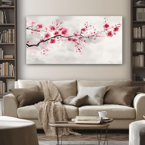SKOEUI Japonais Fleur de Cerisier Tableau Decoration Murale Salon 50x100 cm Aquarelle Branche Impression sur Toile Sans Cadre Tableau Moderne pour Chambre Cuisine Bureau Affiche Décoratifs Muraux