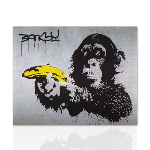 Declea Tableau moderne Monkey avec Banana Banksy prêt à accrocher Sacrifice Banksy Canvas Art Contemporain Cadre en bois fait à la main