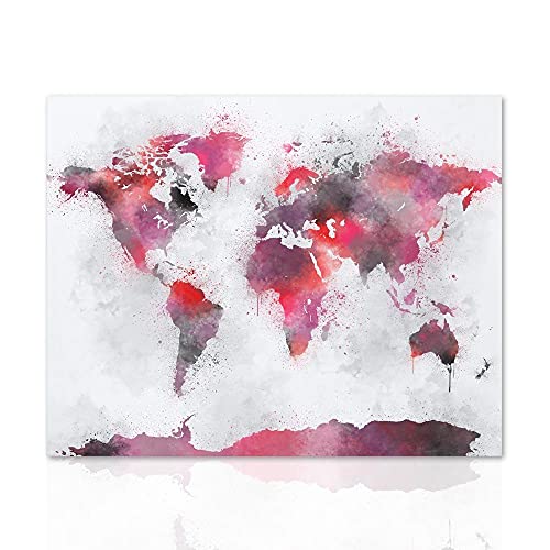 Declea Home Decor Tableau moderne planisphère fleuri carte géographique monde – Tableau imprimé sur toile moderne prêt à accrocher avec cadre en bois fabriqué à la main