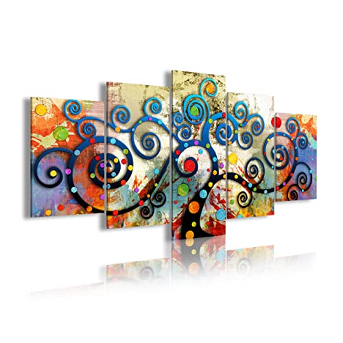 Dekoarte 488 - Tableau moderne sur toile monté sur cadre en bois 5 pièces XXL, style amusant de l'arbre de vie, 200x100cm