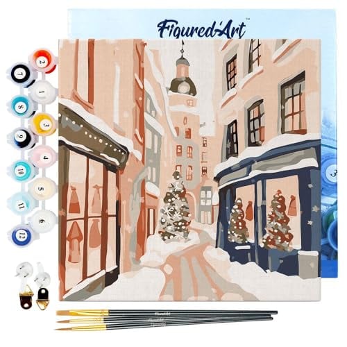 Figured'Art Peinture par Numéro Adulte avec Cadre Ville de Noël Colorée - Activité Manuelle Kit de Loisir Créatif DIY Numéro d'Art Complet - 40x50cm toile tendue sur châssis