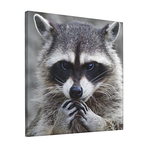 Impression sur toile mignonne de raton laveur sans cadre - Peinture murale moderne pour salon, chambre à coucher, décoration d'intérieur, 30,5 x 30,5 cm