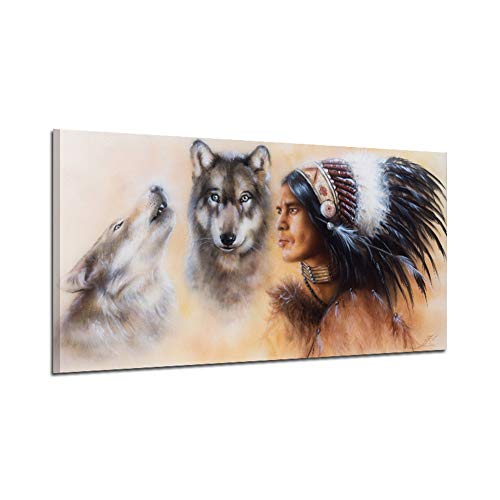 ABLUD Art Peinture sur Toile Amérindienne Indienne Fille Et Chien Affiche Moderne Décor À La Maison Imprimer sans Cadre Toile Illustration Prêt À Accrocher,80 * 40Cm