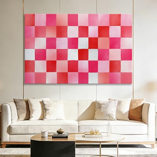 Tableau sur Toile Moderne 120L x 60l cm Aquarelle Géométrique Rose Carreaux avec Cadre, Peinture Murale Artistique Moderne pour Décoration Maison - Cadeau de Crémaillère Prêt à Poser
