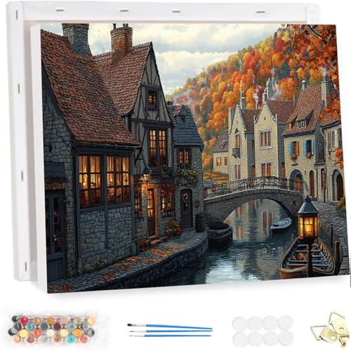 Peinture par Numero Adulte avec Cadre, Moderne Peinture par Numéros Adulte, DIY Paysage Paint by Numbers Artisanat Kit, avec Pinceaux et peintures acryliques, Decoration Maison Cadeau 30x40cm YF-4887