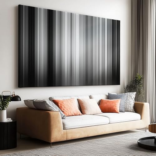 Générique Tableau sur Toile Moderne 120L x 80l cm Vintage Abstrait Noir et Blanc Rayures avec Cadre, Peinture Murale Artistique Moderne pour Décoration Maison - Cadeau de Crémaillère Prêt à Poser
