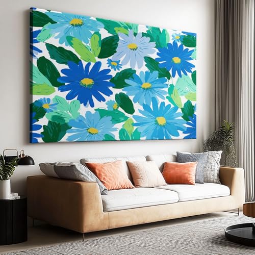 Générique Tableau sur Toile Moderne 120L x 60l cm Vintage Plantes Fleurs Bleu Marguerite avec Cadre, Peinture Murale Artistique Moderne pour Décoration Maison - Cadeau de Crémaillère Prêt à Poser