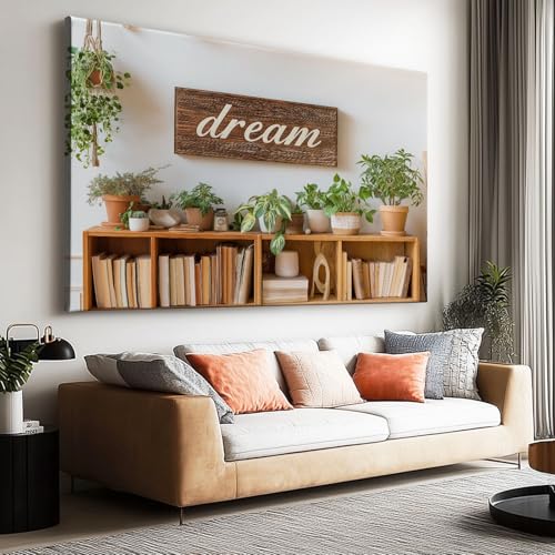 Générique Tableau sur Toile Moderne 140L x 70l cm Boho Plantes Lettres Plante en Pot avec Cadre, Peinture Murale Artistique Moderne pour Décoration Maison - Cadeau de Crémaillère Prêt à Poser
