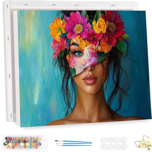 Peinture par Numero Adulte avec Cadre, Moderne Peinture par Numéros Adulte, DIY Fleur Paint by Numbers Artisanat Kit, avec Pinceaux et peintures acryliques, Decoration Maison Cadeau 50x70cm YF-4969