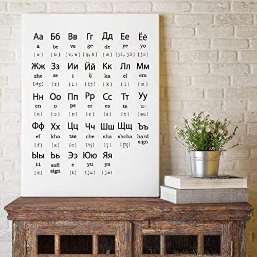 ZLARGEW Alphabet Russe Impression pépinière Mur Art Toile Peinture Noir et Blanc Photo Moderne Affiche Russie Maison Chambre Art décoration Murale - 30x40 cm sans Cadre