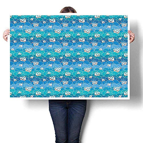 SCOCICI1588 Peinture Murale colorée, Bateau et Vagues - Bouclée - Décoration Murale Moderne - sans Cadre 28 x 16inch(70x40cm)/1pc Pattern-01(Horizontal Painting)