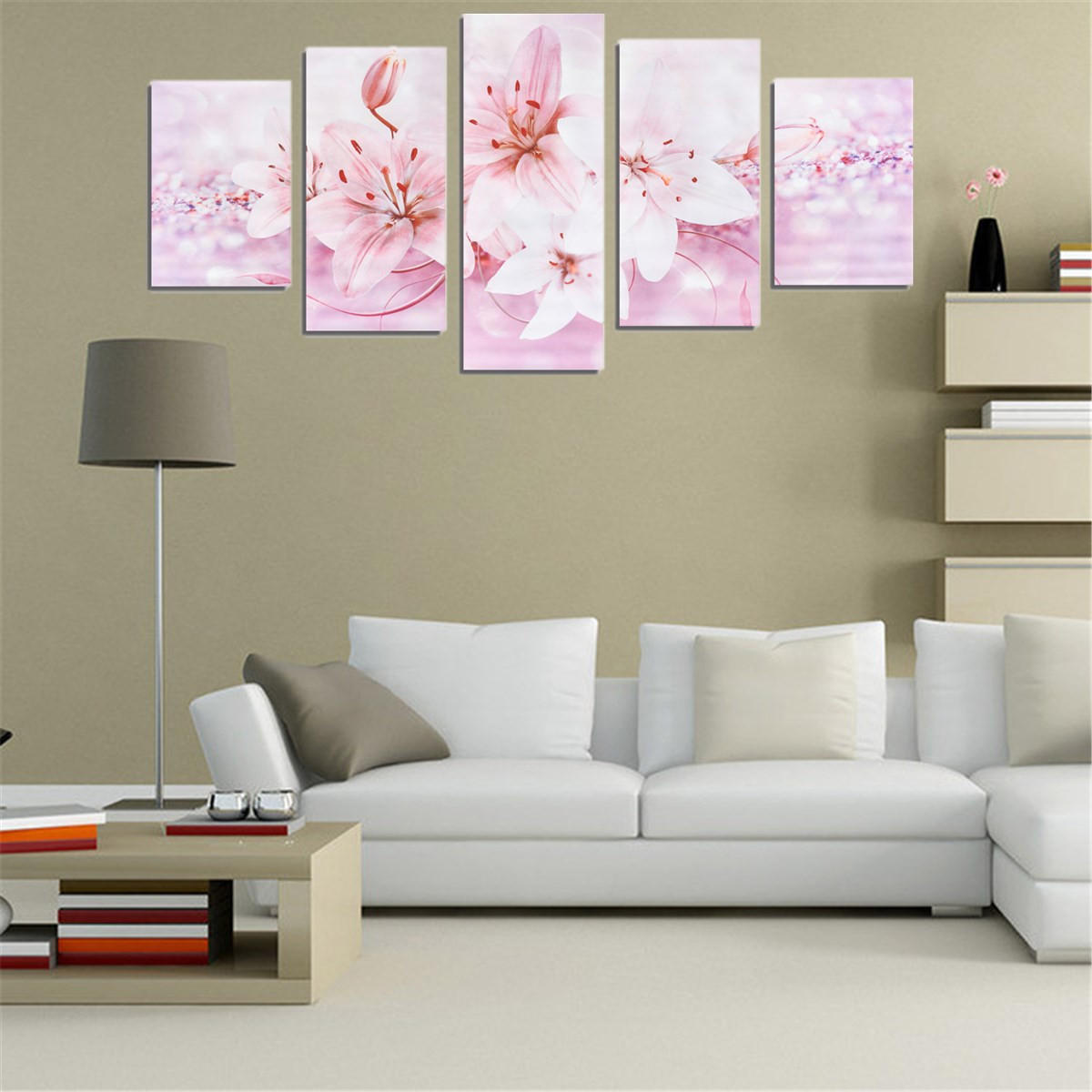 5PCS lys sans cadre toile moderne peinture murale peinture accueil décoration - Blanc