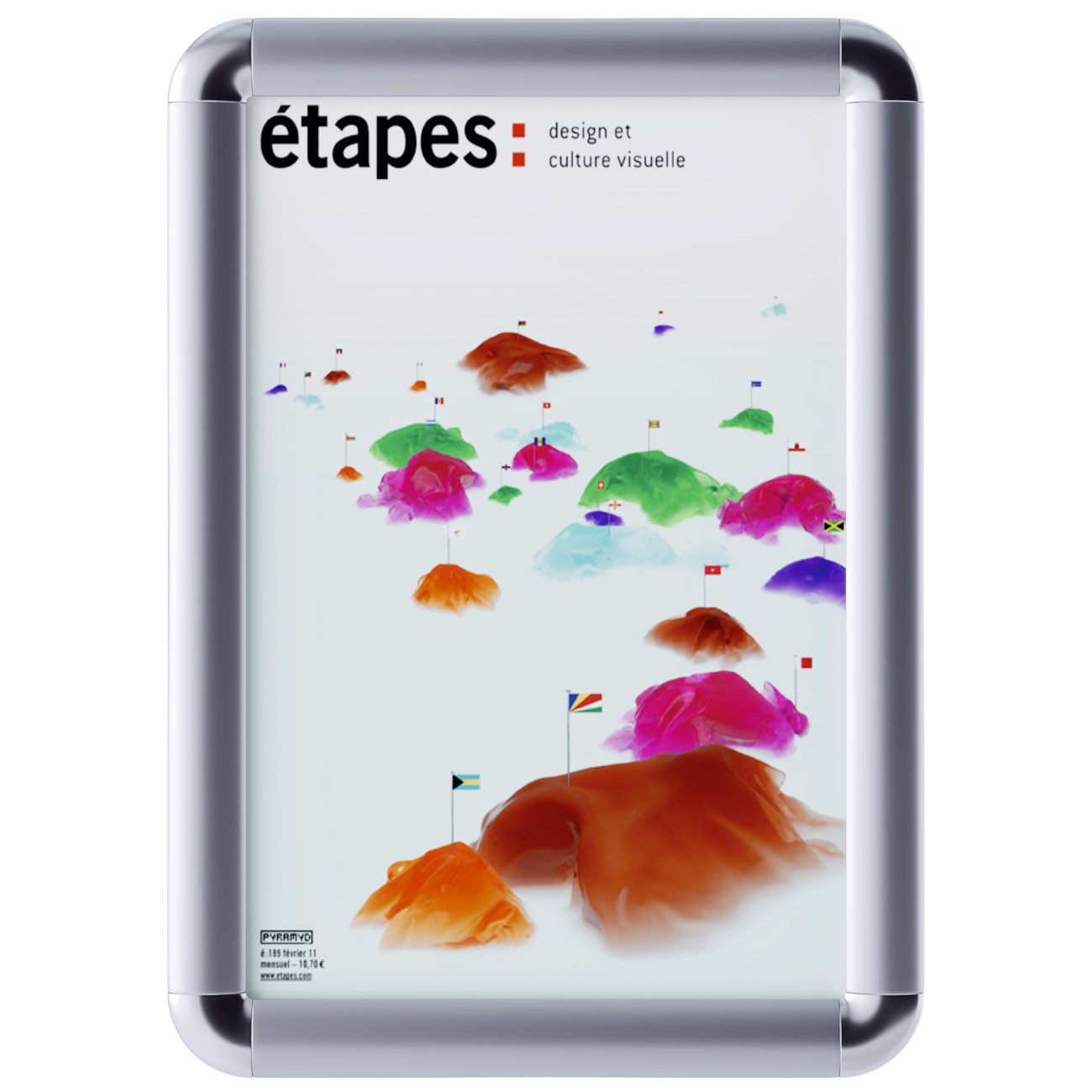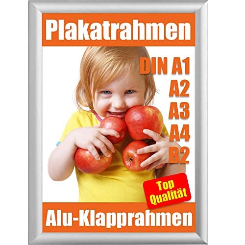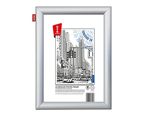 Floordirekt Opti-Clic Cadre photo interchangeable, format A4, argenté, pour affiches, publicité et menus, cadre pour posters avec bords arrondis en aluminium, cadre pliable à changement rapide, 24 x