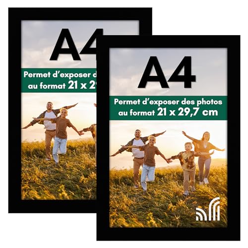 Your Decoration - Cadre photo A4 21x29.7 cm - Noir Brillant - Cadre Photo en Plastique Avec Verre acrylique - Anti-Reflet - Cadre A4 21x29.7 - Evry