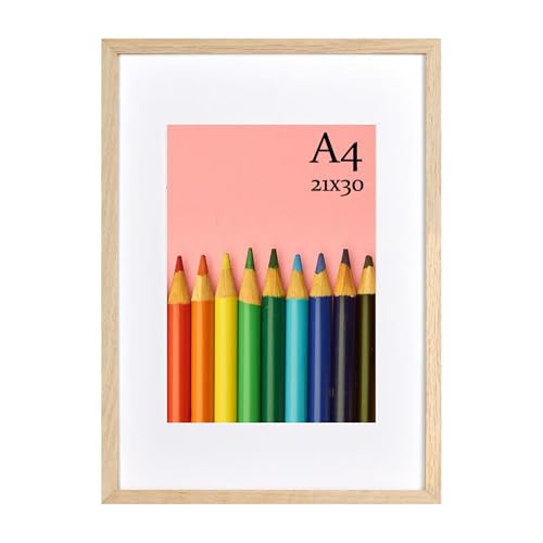 LYYYYX LYYYX Cadre photo DIN A4 en bois avec passe-partout Cadres avec verre acrylique suspension/poser verticalement ou horizontalement Cadre photo en bois pour photos, posters, puzzles,Lot de 1
