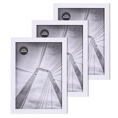 lincoolart Cadre Photo A4 Blanc en Bois, Cadre MDF DIN A4 avec Verre Acrylique Anti-Éclaboussures, Lot de 3