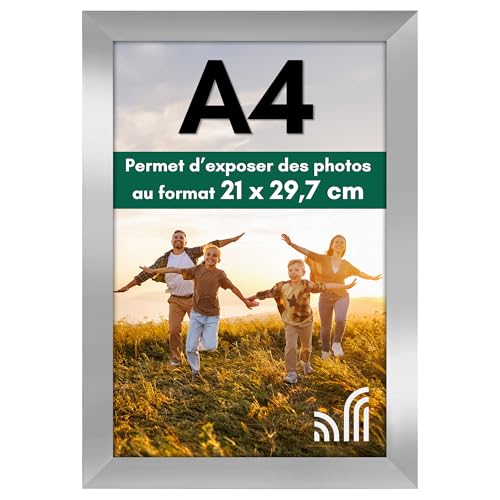 Hampton Frames | Cadre photo aluminium A4, argenté, 21 x 29,7 cm, plexiglas sécurisé, fixation murale ou autonome, portrait/paysage | Bureau maison