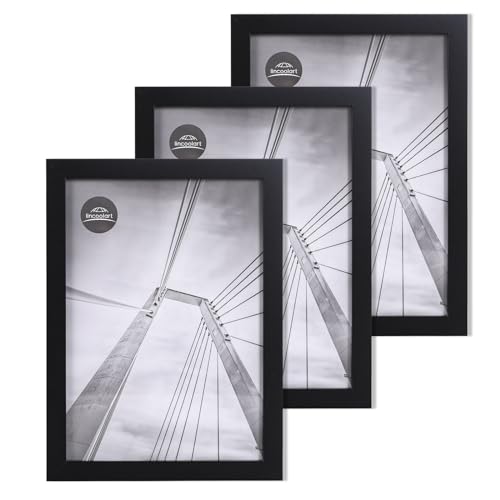 lincoolart Cadre Photo A4 Noir en Bois avec Verre Acrylique Anti-Éclatement, Cadre MDF DIN A4 avec Verre Acrylique Anti-Éclatement, Lot de 3