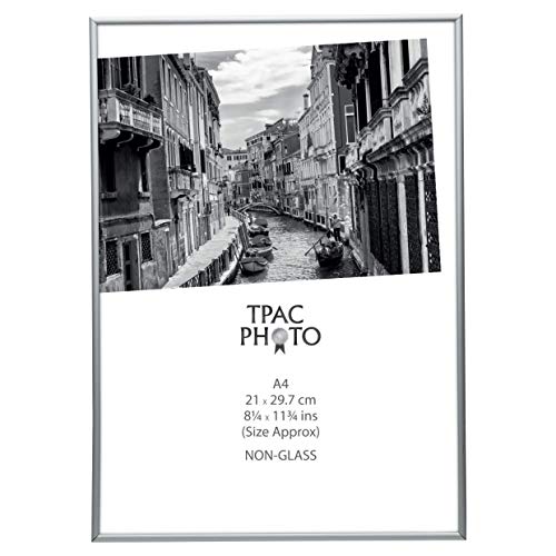 Hampton Frames | Cadre photo A4 argent, façade sans verre | Insertion facile par l’arrière, léger, format standard | Pour affiches, décoration intérieure