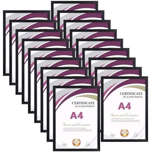 Hoikwo Cadre Photo A4 (21x29,7 cm), Lot de 18 Cadre Photo Noir à Bord Étroit pour Certificat, Cadre A4 pour Photographies, Certificat, Document - Affichage Mural ou Sur Table