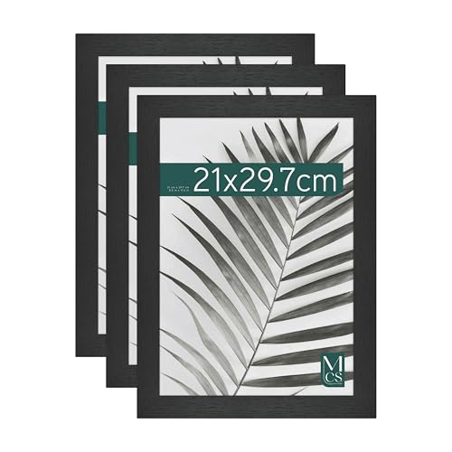 MCS Cadre Photo Studio Gallery A4 21,0 x 29,7 cm, Aspect Bois Noir, Bois MDF, Fixation Murale Verticale et Horizontale, Cadre Photo Moyen pour Photos, Documents et Œuvres d'Art (Lot de 3)