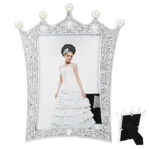 JHKNNK Cadre Photo Fantaisie Paillettes et Couronne Baroque – en Métal Vieilli Argenté – Cadre Photo Multiple 6 Pouces – pour Décoration Intérieure et Événements Spéciaux