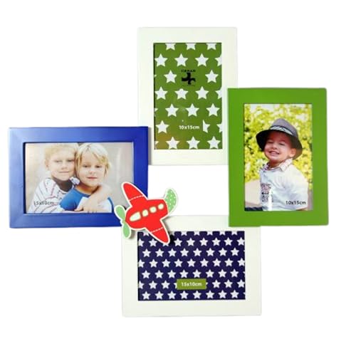 DRW Cadre photo multiple Avion pour enfant Bleu et vert 4 photos 40 x 38 x 5 cm