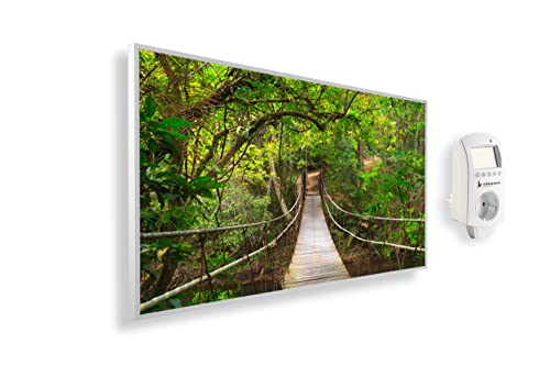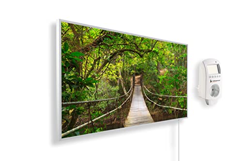 Könighaus Chauffage d’appoint infrarouge avec photo - 1000 W + Smart Thermostat connecté & appli Könighaus - Chauffage mural infrarouge économe avec motif - Cadre blanc (05. Pont dans la jungle)