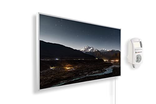 Könighaus Chauffage d’appoint infrarouge avec photo - 1000 W + Smart Thermostat connecté & appli Könighaus - Chauffage mural infrarouge économe avec motif - Cadre blanc (17. Ciel étoilé 1)