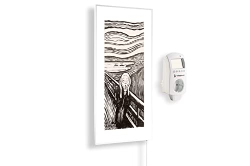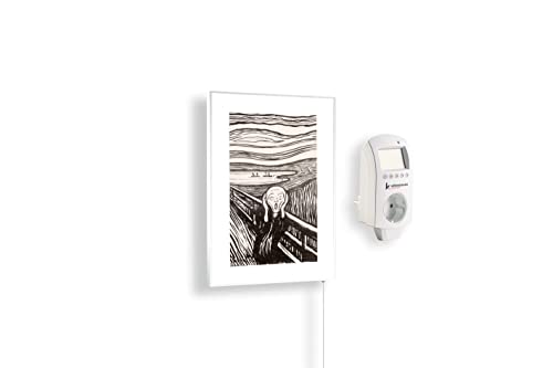 Könighaus Chauffage d’appoint infrarouge avec photo - 300 W + Smart Thermostat connecté & appli Könighaus - Chauffage mural infrarouge économe avec motif - Cadre blanc (19. Images de musée)
