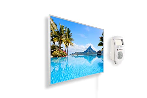 Könighaus Chauffage d’appoint infrarouge avec photo - 1000 W + Smart Thermostat connecté & appli Könighaus - Chauffage mural infrarouge économe avec motif - Cadre blanc (01. Île de Bora Bora)