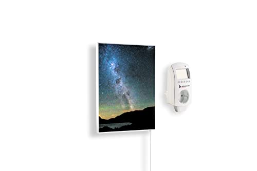 Könighaus Chauffage d’appoint infrarouge avec photo - 450 W + Smart Thermostat connecté & appli Könighaus - Chauffage mural infrarouge économe avec motif - Cadre blanc (18. Ciel étoilé 2)