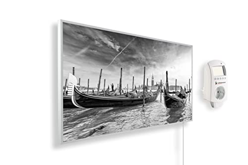Könighaus Chauffage d’appoint infrarouge avec photo - 450 W + Smart Thermostat connecté & appli Könighaus - Chauffage mural infrarouge économe avec motif - Cadre blanc (10. Vue de Venise)