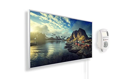 Könighaus Chauffage d’appoint infrarouge avec photo - 1200 W + Smart Thermostat connecté & appli Könighaus - Chauffage mural infrarouge économe avec motif - Cadre blanc (06. Paysage de Norvège)