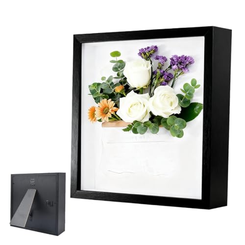 Pasdrucn Cadre Photo Blanc 20x20 Cm, Cadre Photo Souvenirs Profond De 5 Cm, Cadre D'objet 3D en Bois, Cadre Photo Profond à Remplir (Les Fleurs Ne sont Pas Incluses dans Le Cadre Photo) (Noir)