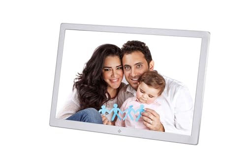Cadre Photo Numérique, 15 Pouce Haute Résolution 1280 * 800 Support Photo/Musique/Vidéo HD/Calendrie/Multilingue avec Télécommande(Blanc)