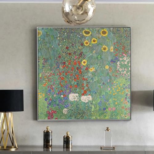 HOLEILUCK Gustav Klimt Célèbre impression sur toile peintures reproductions ferme jardin avec tournesols impressions d'art photos décoratives pour la maison 30x30 cm/12x12 pouces sans cadre