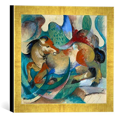 kunst für alle 'Encadré Image de Franz Marc Spring de Cheval, d'art en qualité Photos Fait Main de Cadre, 30 x 30 cm, Doré Raya