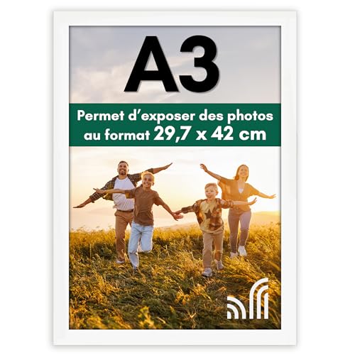 Americanflat Cadre Photo A3 Blanc - Cadre A3 en MDF avec Verre Incassable Poli et Matériel de Suspension Intégré - Format Horizontal et Vertical pour Mur