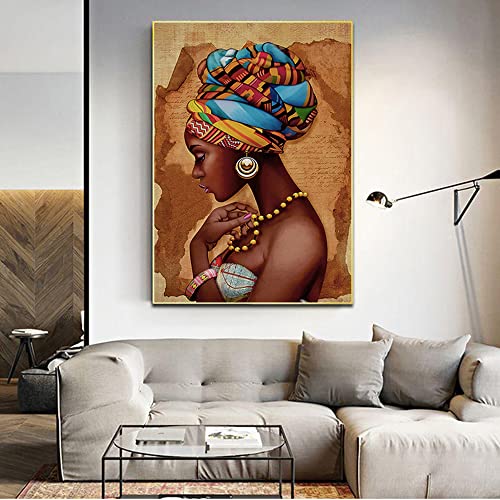 Youihom Impression sur Toile 50x70 Grand Tableau Femme Africaine Affiche Art Mural Decoration Poster Aesthetic pour Chambre Salon Moderne sans Cadre
