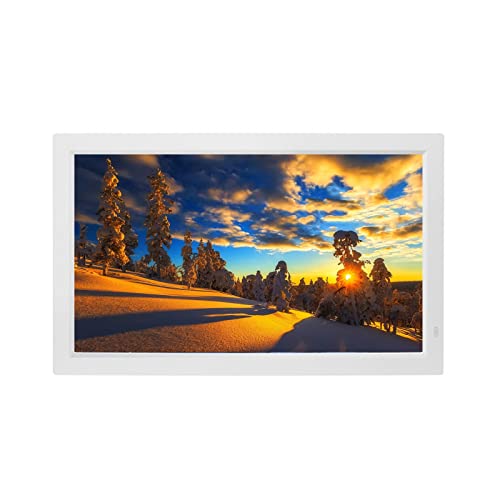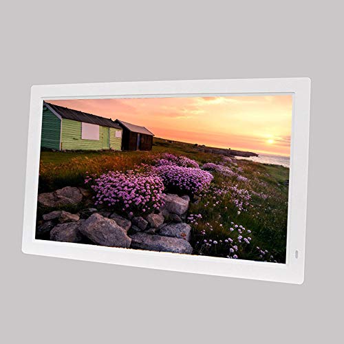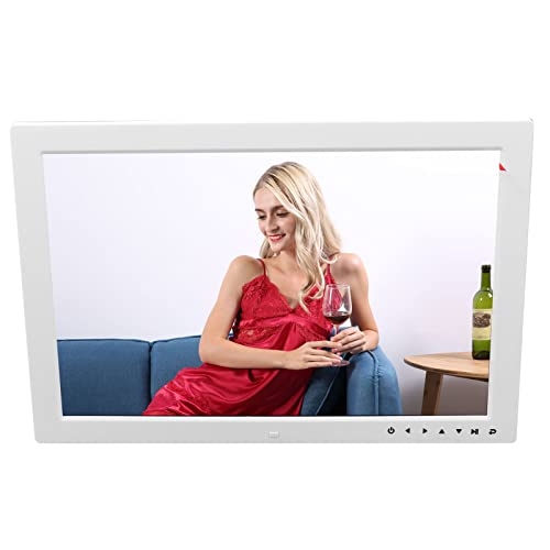 Cadre Photo Numérique 15,4 Pouces, Cadre Vidéo Numérique, Cadre Photo électronique HD Lecteur Publicitaire Support Vidéo Musique Horloge avec Support de Touches Tactiles Blanc