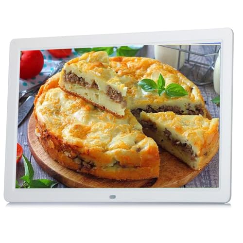 Greensen Cadre Photo Numérique 15 Pouces, Cadre Photo électronique HD 1280 * 800, Haute Résolution, Lecteur de Musique et Vidéo, Réveil, pour la Famille et Les Amis (White)
