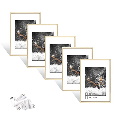 PHOTOLINI Cadre photo 13 x 18 cm dorés, lot de 10 cadres en plastique étroits, verre acrylique, à poser et à suspendre, avec accessoires - pour documents, diplômes, certificats et photos
